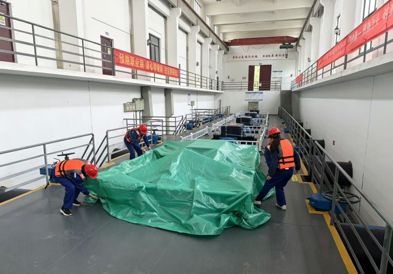 本次演练紧密围绕三个关键科目有序推进:一是模拟巡线人员在巡查过程中发现2号阀井出现严重积水状况,急需展开紧急排水作业。随即,巡线人员于泵站前池有条不紊地演练抽水作业流程,力求在实际汛情中能够熟练、高效地应对此类突发状况;二是假设泵站大门口水流汹涌冲击前池,对前池和泵房西门构成严重威胁。在此情形下,演练人员迅速反应,迅速将沙袋有序堆放在泵站大门内侧,成功将水流分流至北侧排水渠,有效化解了可能出现的危机;三是假设泵房工作人员在日常巡查时,发现屋顶出现漏水现象,可能危及电器设备安全。抢险人员即刻响应,迅速对靠近漏水点的电器设备加盖防水雨布,及时采取防护措施,确保电器设备在恶劣天气条件下的正常运行。