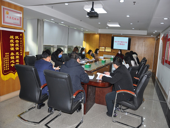 为提升中原区公共文化服务工作实效,确保2021年各项工作有序开展,1月29日上午,中原区文化旅游体育局在三楼会议室召开文化工作推进会。会议由局党组成员、副局长马岩岩主持,文化馆副馆长李姗姗及各街道办事处分管文化工作的负责人参会。
