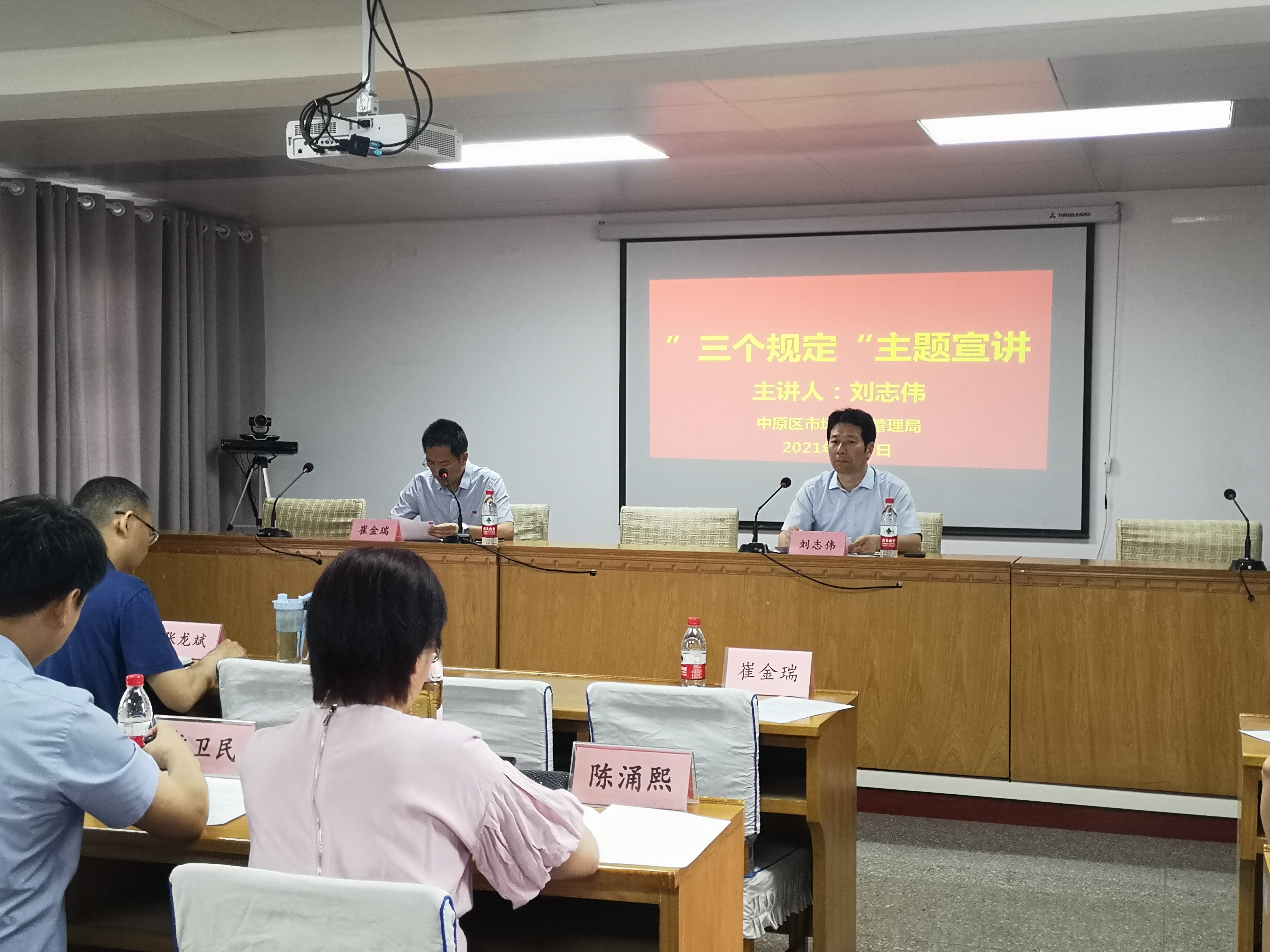 宣讲队伍由局党组书记、局长刘志伟以及班子成员组建,宣讲覆盖市场监管局、事务管理局、应急管理局、商务局局、退役军人事务局、秦岭路街道等10个单位进行“三个规定”大宣讲。