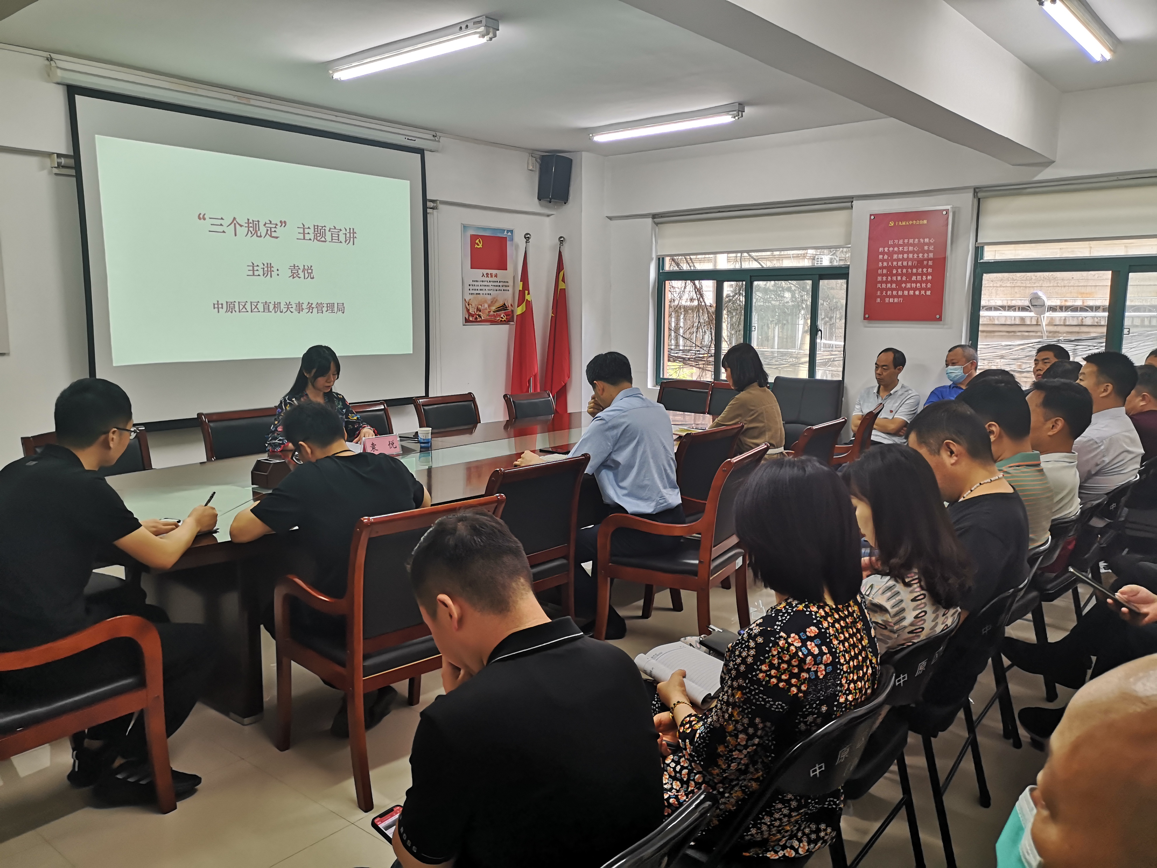 中原区司法局宣讲团详细介绍了《领导干部干预司法活动、插手具体案件处理的记录、通报和责任追究规定》等内容,并结合发生在身边的案例进一步阐述了违反“三个规定”对司法公信力、领导干部和司法机关工作人员造成的重大影响,引导广大党员干部自觉遵守“三个规定”,自觉接受监督,带头维护司法权威,全力支持司法机关依法公正行使职权。