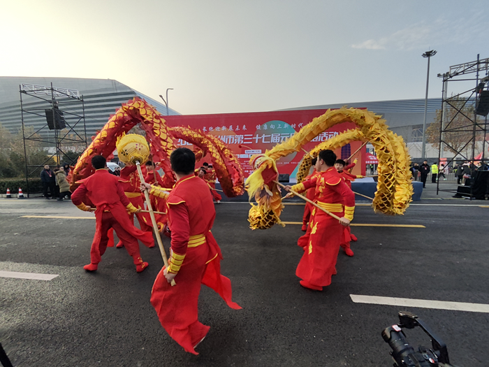 龙腾狮跃 喜迎元旦中原区舞龙舞狮助力2024年郑州市元旦长跑