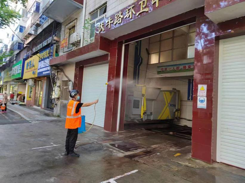 夏季天气炎热,生活垃圾容易滋生蚊虫产生恶臭,中原区加大保洁力度,确保垃圾日产日清,减少滞留和积存。通过“扫—推-吹—冲—洒”五步保洁法,全面深度清洁中转站内外,保持地面、立面和设备设施的洁净无异味。每日定时对垃圾存放区和压缩区等易滋生细菌和蚊虫的区域进行重点消杀,并使用除臭剂控制异味。分类垃圾经压缩处理后,由专用车辆运往垃圾焚烧场处理。为确保垃圾清运安全有序,中转站严格遵守“三管三必须”工作准则,确保垃圾清运工作高质高效完成。