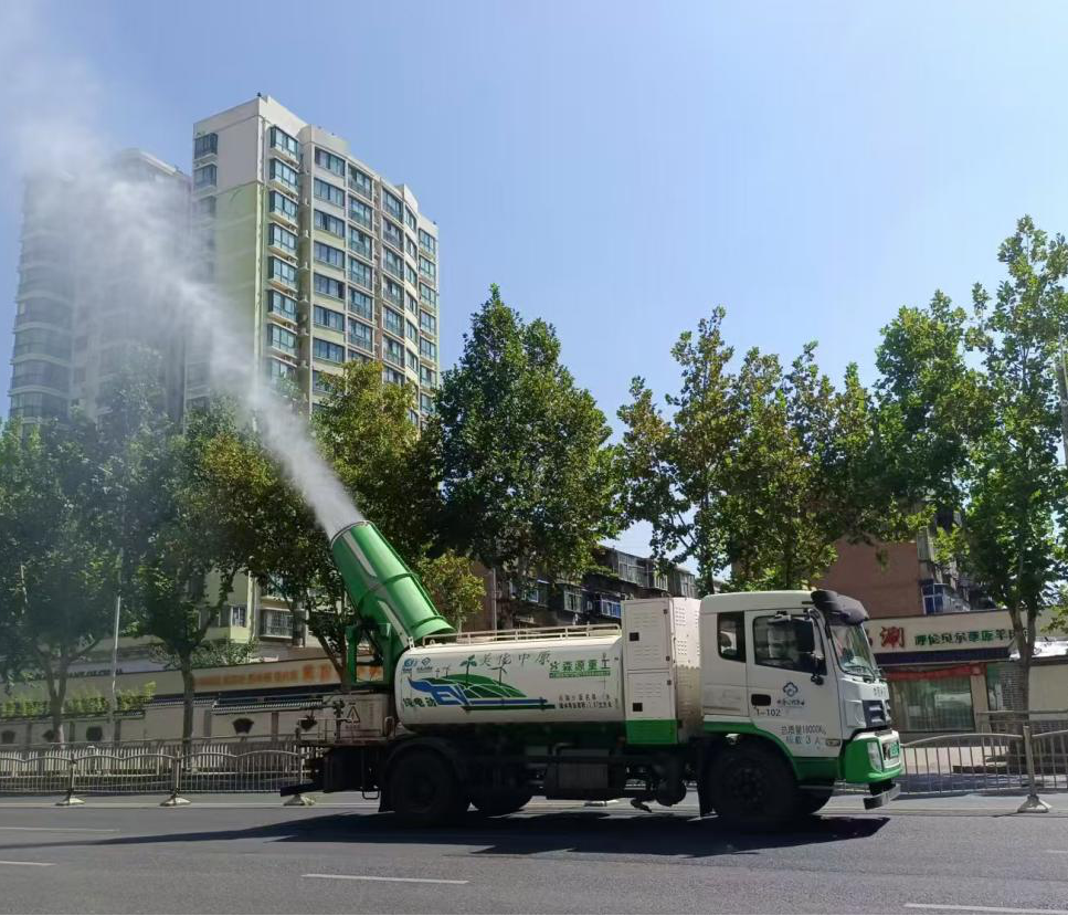 高温天气,路面高温,扬尘增多。在高温时段开展洒水作业,可以起到抑尘、降温、加湿的作用。中原区根据城区道路的车流情况,发挥“机械化”保洁作业优势,利用大型洗扫车、大型洒水车、多功能冲洗车等机械化车辆,动态调整作业时间,对机动车非机动车及道路两边绿植进行喷雾洒水作业,为道路增湿除尘降温。并提醒司机在居民区洒水作业时,遇有行人,洒水车应关闭或降低水压,尽量避免洒水扰民。