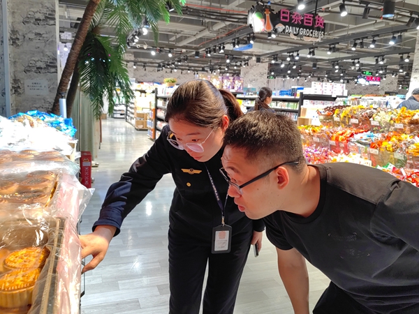 此次专项检查以商场超市、糕点专卖店、食杂店、农贸市场等月饼销售场所为重点对象。检查中,执法人员一是严把源头准入关,仔细查验月饼经营者的主体资质,确保亮证经营,督促经营者严格落实进货查验、索证索票制度,确保月饼来源可溯、去向可查;二是聚焦产品质量关,重点检查月饼的包装标识是否规范、清晰、完整,是否明确标注了食品名称、生产日期、保质期、配料表、生产者信息等内容;查看月饼储存条件是否符合要求,是否存在销售“三无”、过期、变质月饼的行为;三是关注市场秩序,加强对月饼价格行为的监管,检查是否存在过度包装、搭售商品、虚构原价、价格欺诈等违法违规行为,倡导绿色消费、理性消费,督促经营者明码标价、诚信经营。