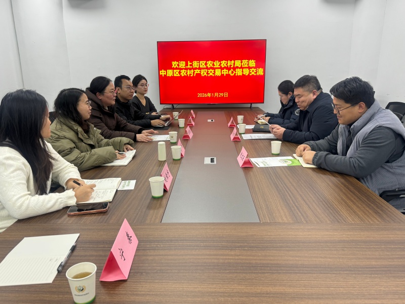 1月29日下午,上街区农业农村局局长吴永杰带队到中原区农村产权交易中心考察调研建设工作。中原区农业农村局主要负责人王冬青陪同调研,区农业农村局相关业务科室及农村产权交易中心负责人参与接待及交流。