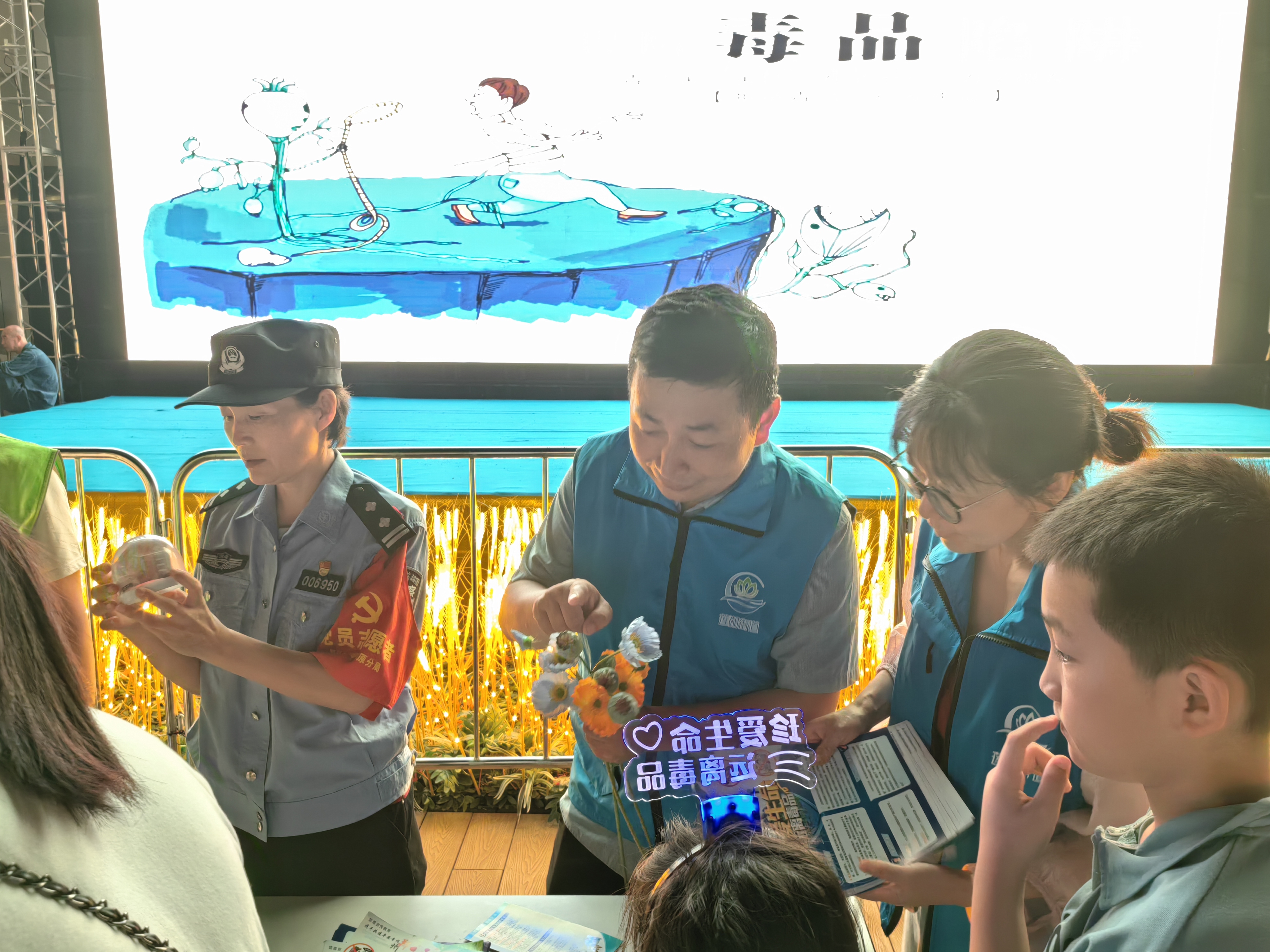 活动中,综治办工作人员和禁毒民警、禁毒社工在奥体星空夜市通过实物展示、悬挂条幅、发放宣传手册等方式,面对面地就毒品的识别、防毒技巧以及禁毒相关法律法规等知识进行讲解。同时鼓励群众积极举报涉毒违法犯罪行为。